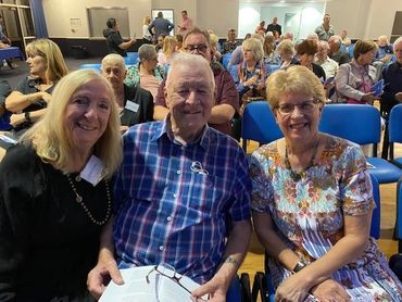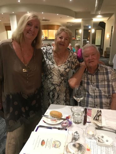 Barry Theiss , Dorothy Carroll, and June Moro pose for the camera at our Thanksgiving 2019 function which drew over 80 people at the Broadbeach Sofitel.
