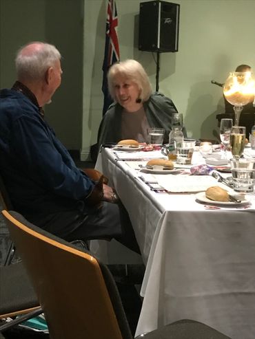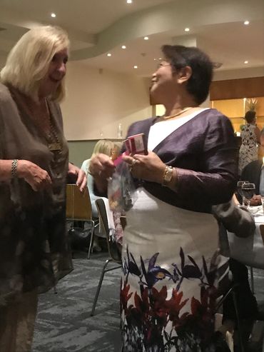 June and our honorary solicitor Gino Moro with Mary behind with Vice President Billie Jo McCann chatting with another guest on right