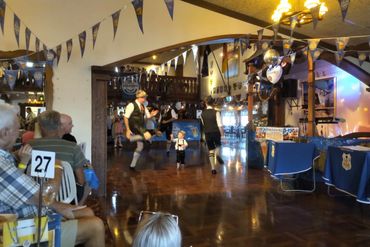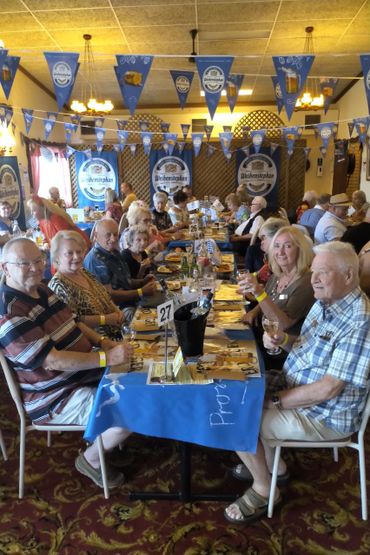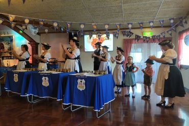 Our Australia Day celebrations saw over 60 in attendance. Here Diana Holzworth offers VP Keith Shackley a special present.